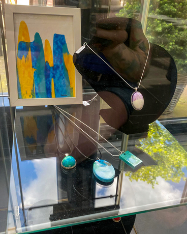 In coronatijd exposeerden we bij particulieren in de binnenstad, en in vitrines bij De Hogeweyk om ook deze bewoners en bezoekers de kans te geven van kunst te genieten.